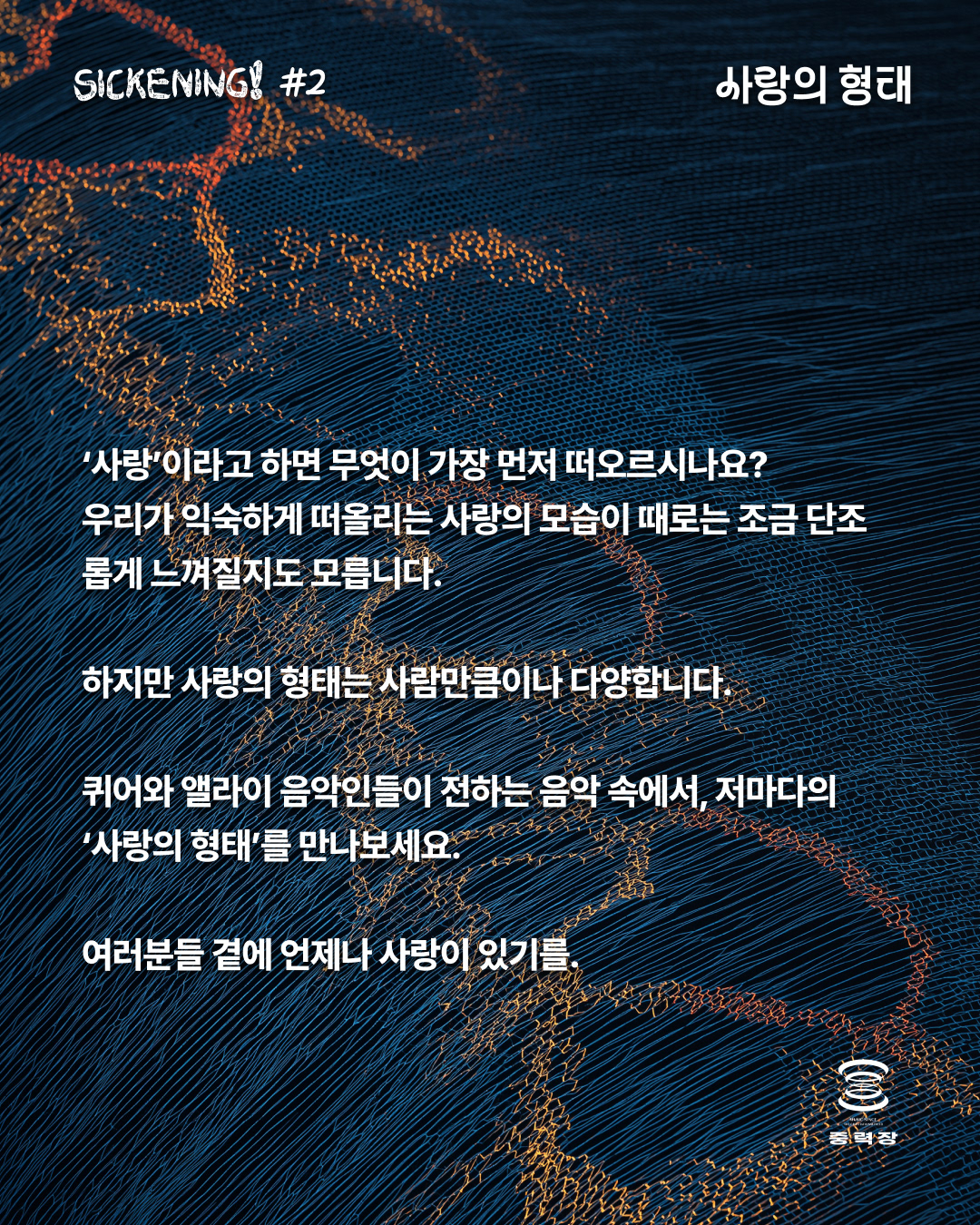 퀴어와 앨라이 음악인들이 전하는 음악 속에서, 저마다의 ‘사랑의 형태’를 만나보세요.